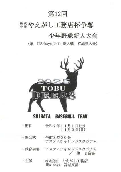 第12回やえがし工務店杯争奪 少年野球新人大会開催!